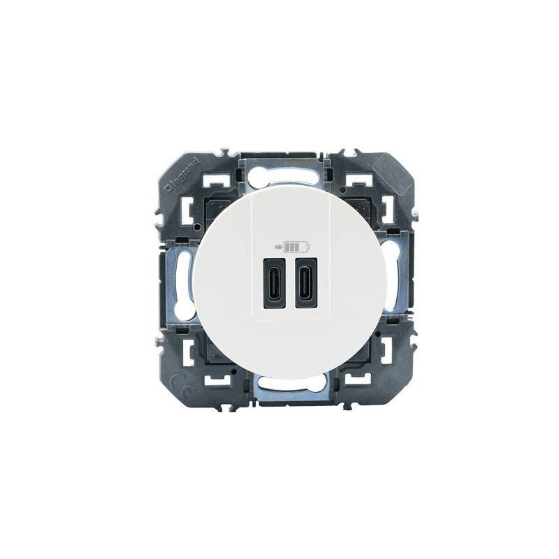La référence Legrand 600345 est un chargeur mural encastrable de la gamme Dooxie. Il est équipé de deux ports USB Type-C, permettant de recharger deux appareils simultanément (comme un smartphone, une tablette ou un accessoire).