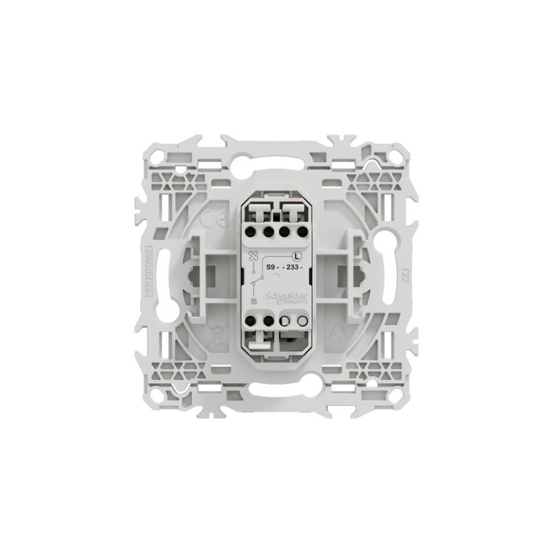 La référence S920233 est un mécanisme interrupteur ou bouton poussoir conçu pour piloter une VMC (Ventilation Mécanique Contrôlée) à deux vitesses.